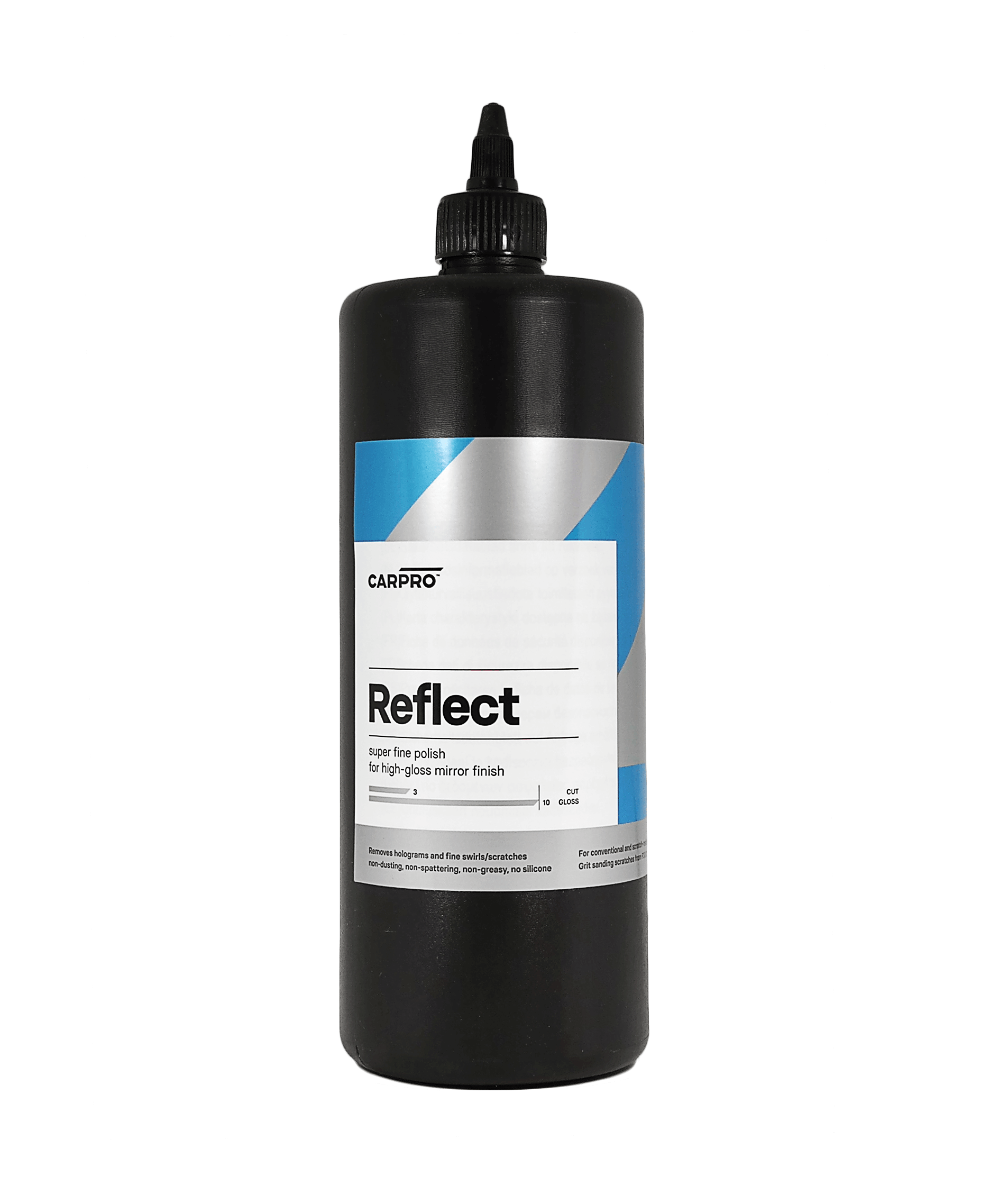 CarPro has done it again! CarPro Reflect quickly and easily creates an incredibly high gloss finish that must be seen to be believed! Comprised of diminishing abrasive technology, Reflect removes light swirls, holograms, and compound haze while producing a reflective extremely high gloss mirror finish in its place. Best of all Reflect is not oily and does not contain durable fillers that interfere with your true results.